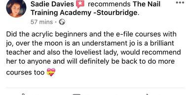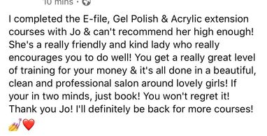 All courses are run by Joanne Jones who has over 15 years industry experience as well as being a nail salon owner who employs highly trained and experienced nail technicians.